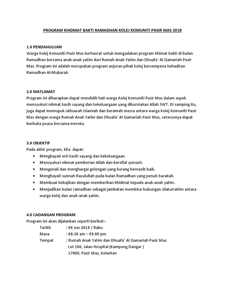 Rumah Kebajikan Anak Yatim Dan Dhuafa Al Qamariah Lot 106 Jalan Hospital Kg Dangar Pasir Mas 2020