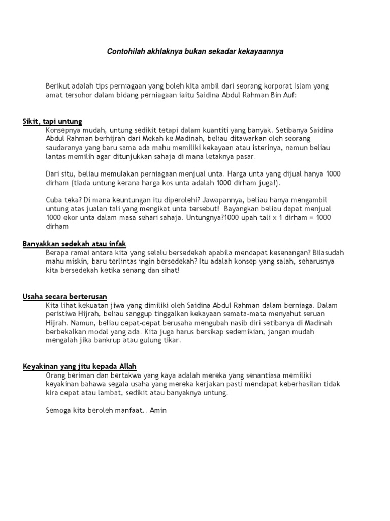 Contohilah Akhlak Abd Rahman Auf Ra Bukan Sekadar Kekayaannya
