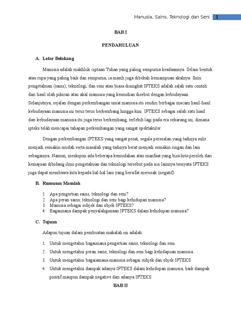 Makalah Isbd Manusia Sains Teknologi Seni Tugas Dan Materi Kuliah