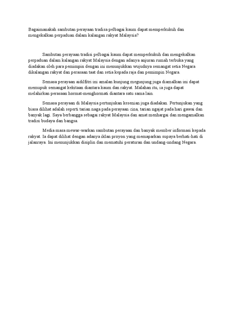 Bagaimanakah Sambutan Perayaan Tradisa Pelbagai Kaum Dapat Memperkukuh Dan Mengekalkan Perpaduan Dalam Kalangan Rakyat Malaysia