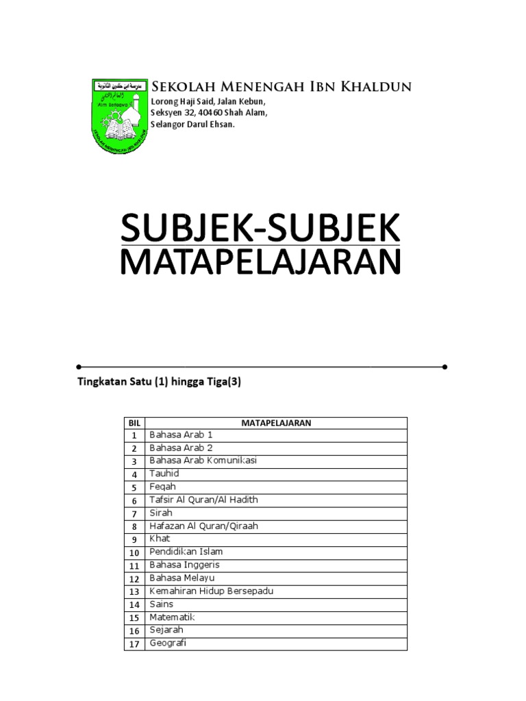 Subjek Matapelajaran