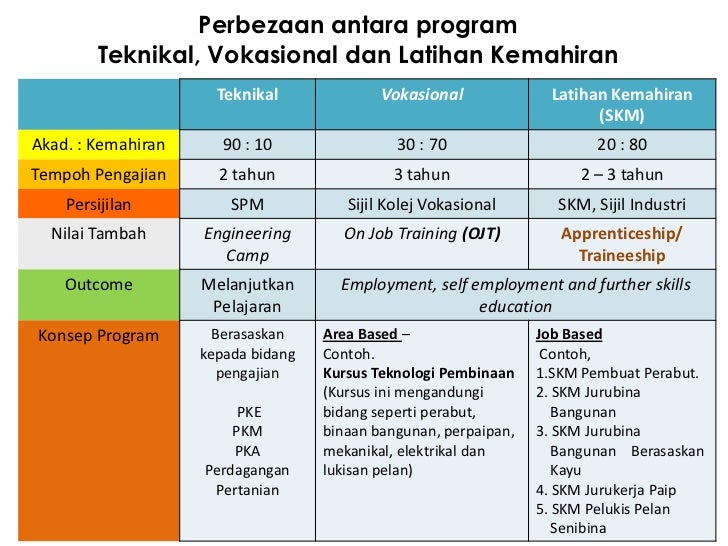 Program kv menjurus kepada diploma di kolej vokasional kv aliran teknikal sekolah menengah teknik. Calon hanya dikehendaki mengisi butiran berikut. Program kemahiran apprenticeshipdi kv institusi latihan kemahiran awam ilka 3. Dalam 4 katagori sekolah semua pilihan sekolah ada salah satu kolej vokasional teknik vokasional dan kemahiran.