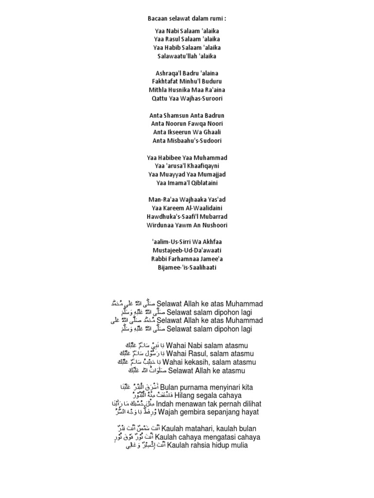 Bacaan Selawat Dalam Rumi