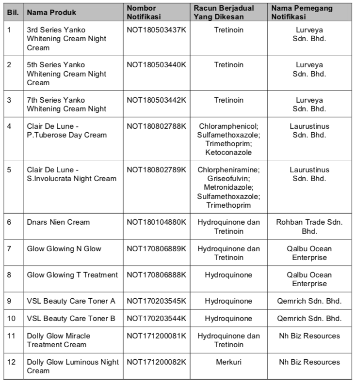 Senarai Terbaru Produk Kecantikan Yang Diharamkan Kkm 2018 Bluebell Skincare