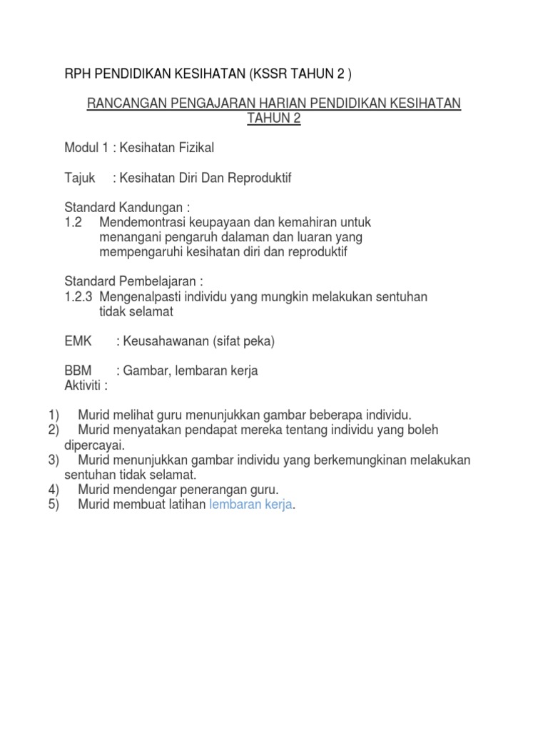 Rph Pendidikan Kesihatan Kssr Tahun 2