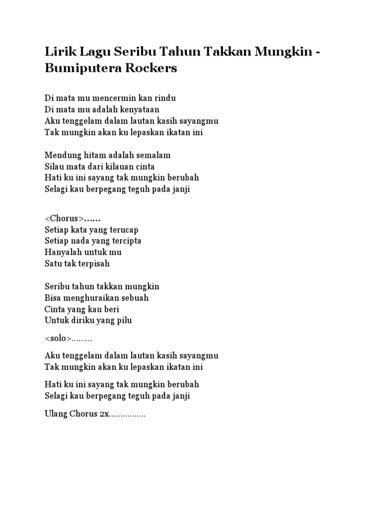 Lirik Dan Chord Lagu Seribu Tahun Takkan Mungkin Bumiputra Rockers