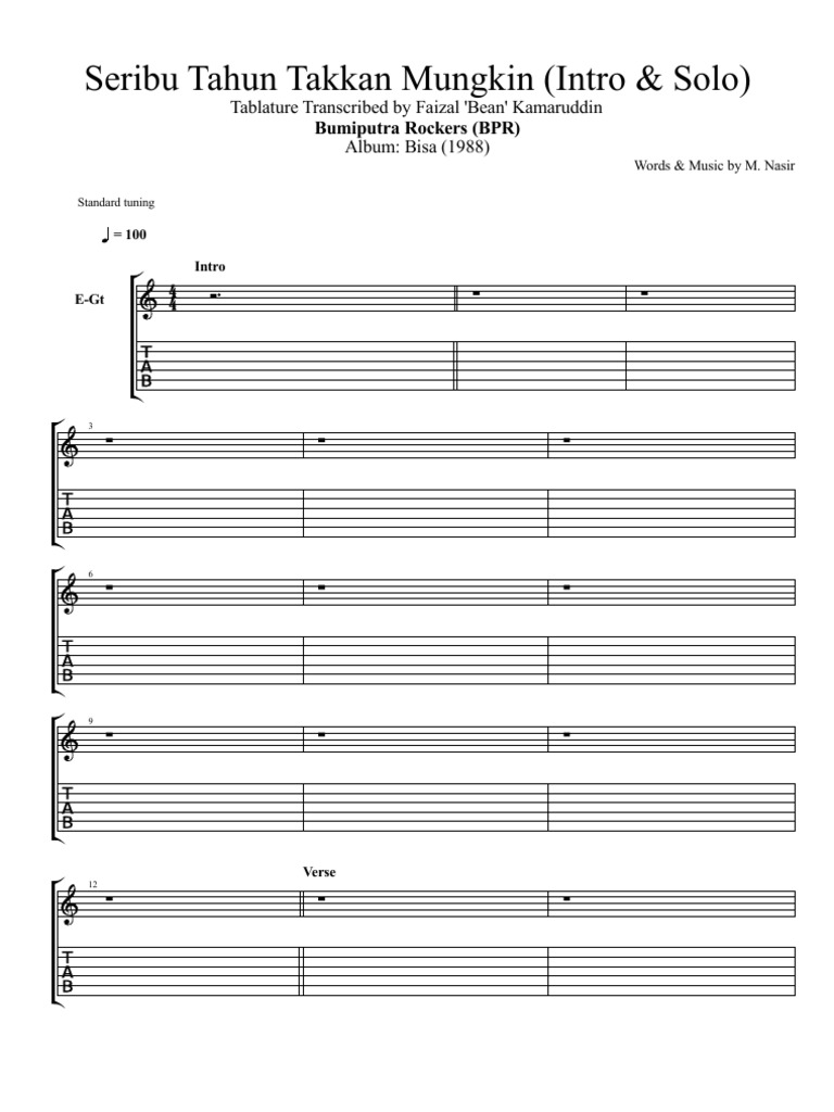 Seribu Tahun Takkan Mungkin Intro Solo Tablature Transcribed By Faizal Bean Kamaruddin Album Bisa 1988