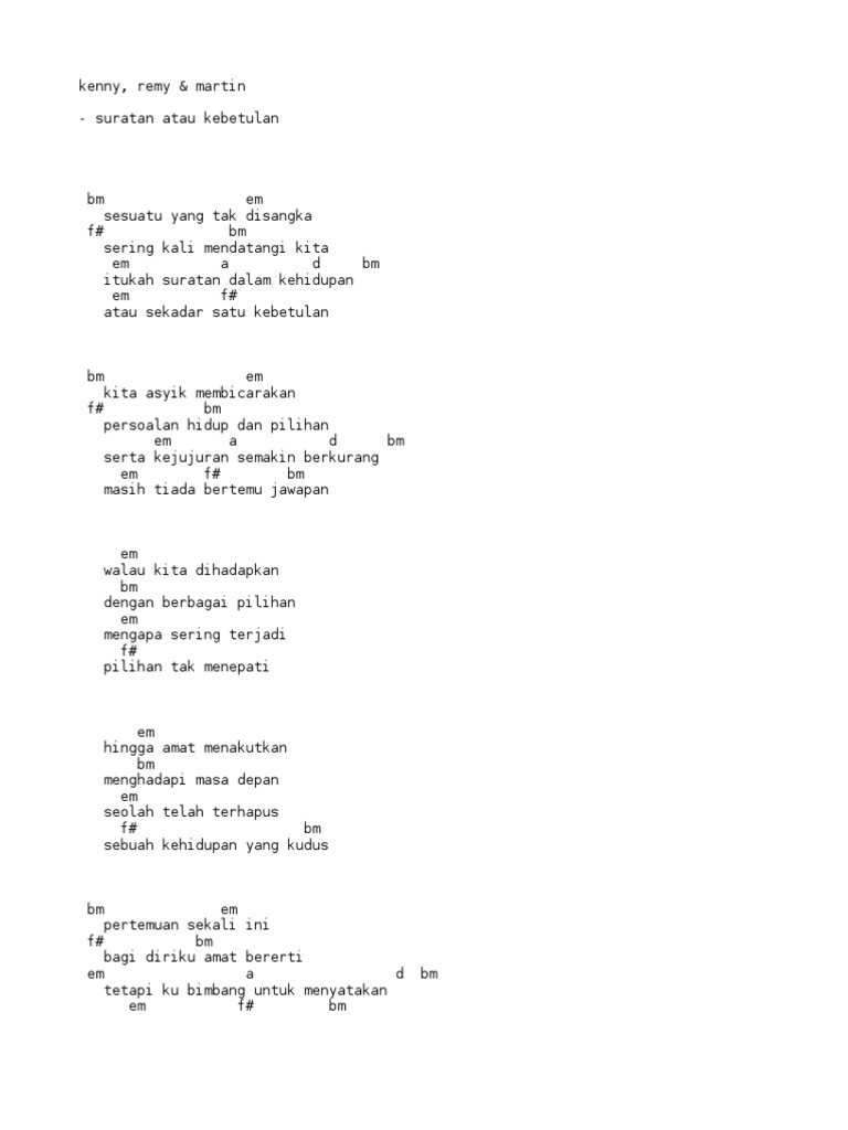 Lirik Suratan Atau Kebetulan By Kenny Remy Martin Fate Or Coincidence Visit Malaysia