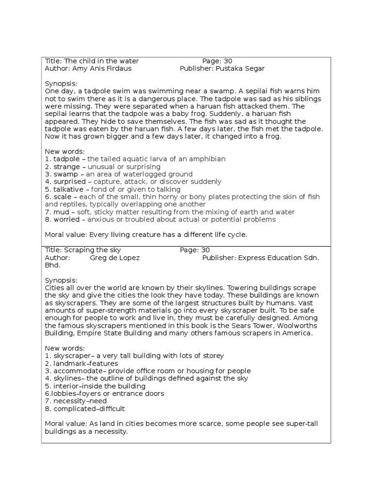 Bahasa Melayu Tahun Satu Marilah Membaca Cerita Cerita Pendek Membaca Buku Membaca Cepat