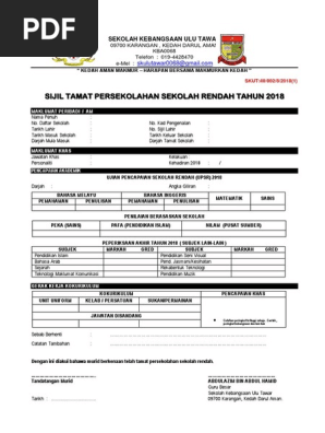 Sijil Tamat Persekolahan Sekolah Rendah Skut Docx