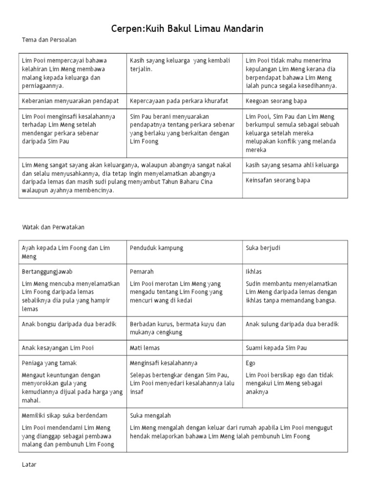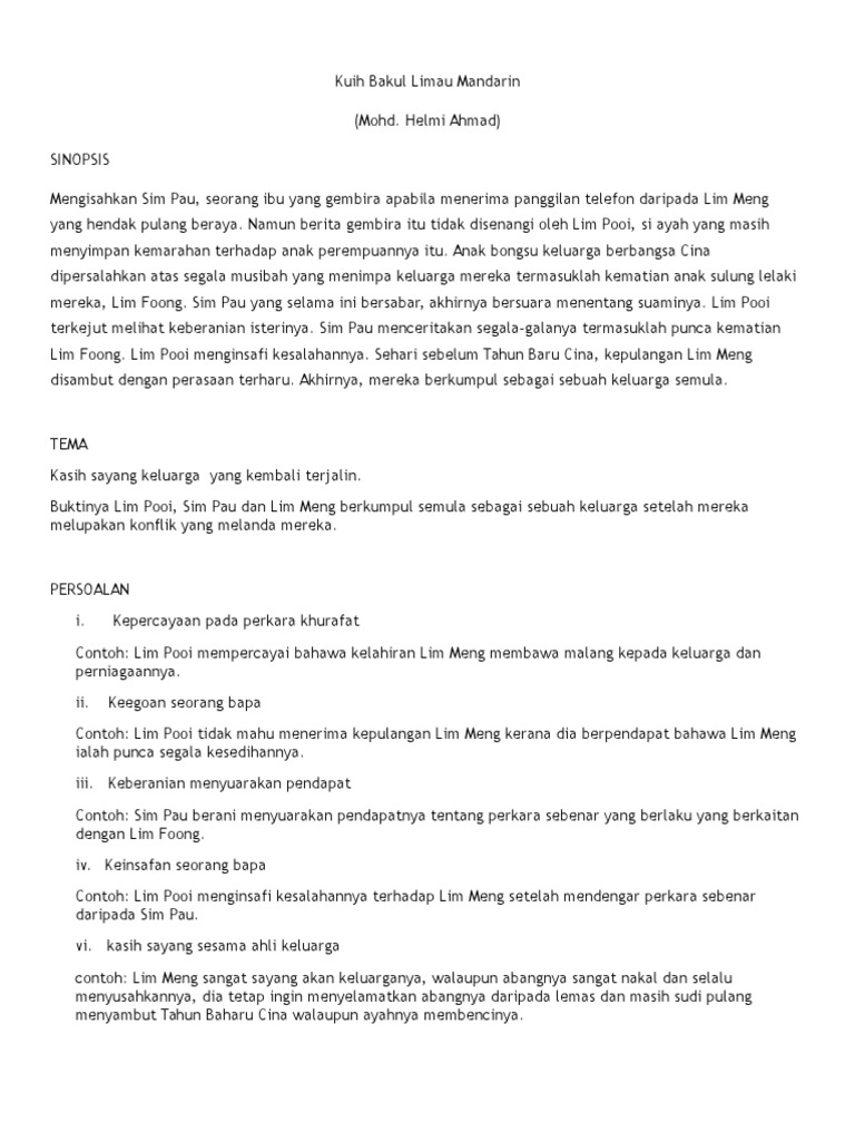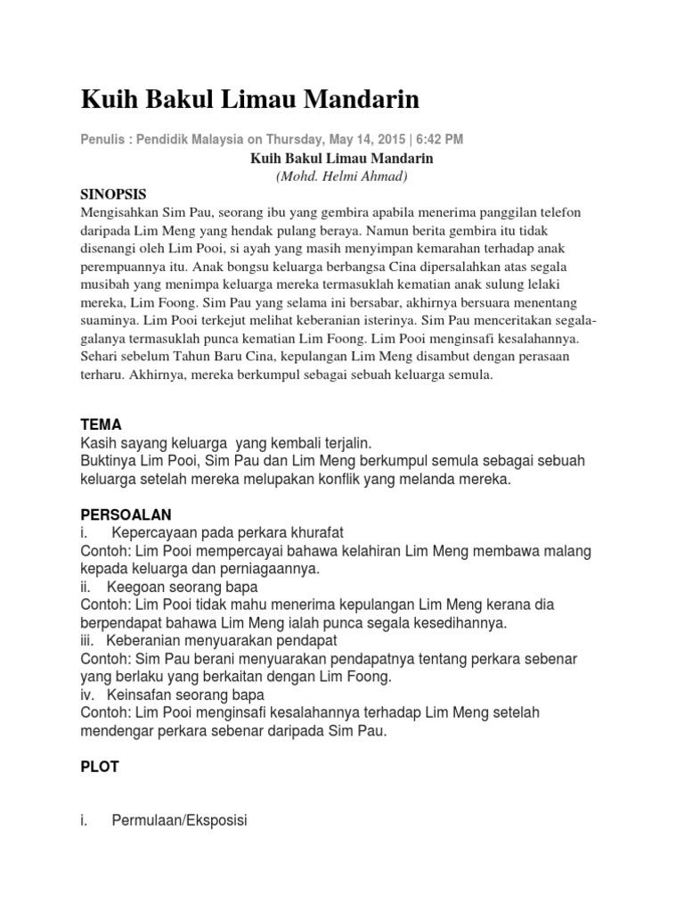 Komsas Tingkatan 1 Cerpen Kuih Bakul Limau Mandarin Lessons Tes Teach