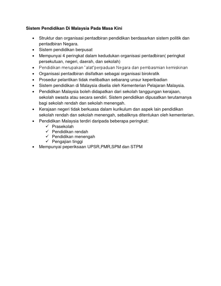 Nota Bab 1 Edu 3101 Sistem Pendidikan Di Malaysia