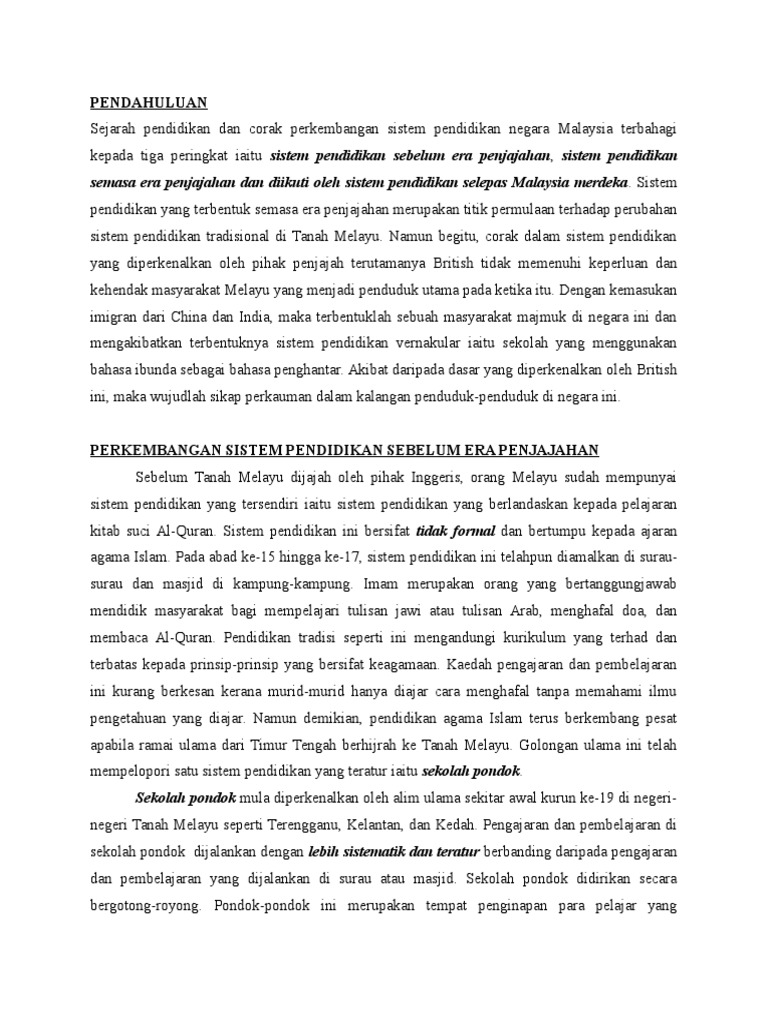 Perkembangan Pendidikan Tajuk Sejarah Pendidikan Di Malaysia Tu