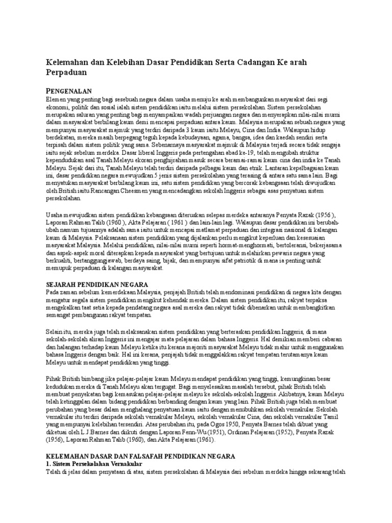 Dalam tahun tahun menuju kemerdekaan telah timbul kesedaran di kalangan pemimpin dan rakyat malaysia tentang betapa mustahaknya diadakan satu sistem pendidikan kebangsaan untuk mengganti sistem pendidikan penjajah bagi memenuhi kehendak negara. Pismp 1c slideshare uses cookies to improve functionality and performance and to provide you with relevant advertising. Sistem pendidikan pra kemerdekaan 1 penyata razak 1956 dan ordinan pelajaran 1957. Kerajaan komited melaksanakan transformasi sistem pendidikan negara untuk tempoh 15 tahun akan datang.