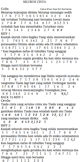 Not Angka Lagu Seluruh Cinta Cakra Khan Feat Siti Nurhaliza Pianika Recorder Keyboard Suling Chord Piano