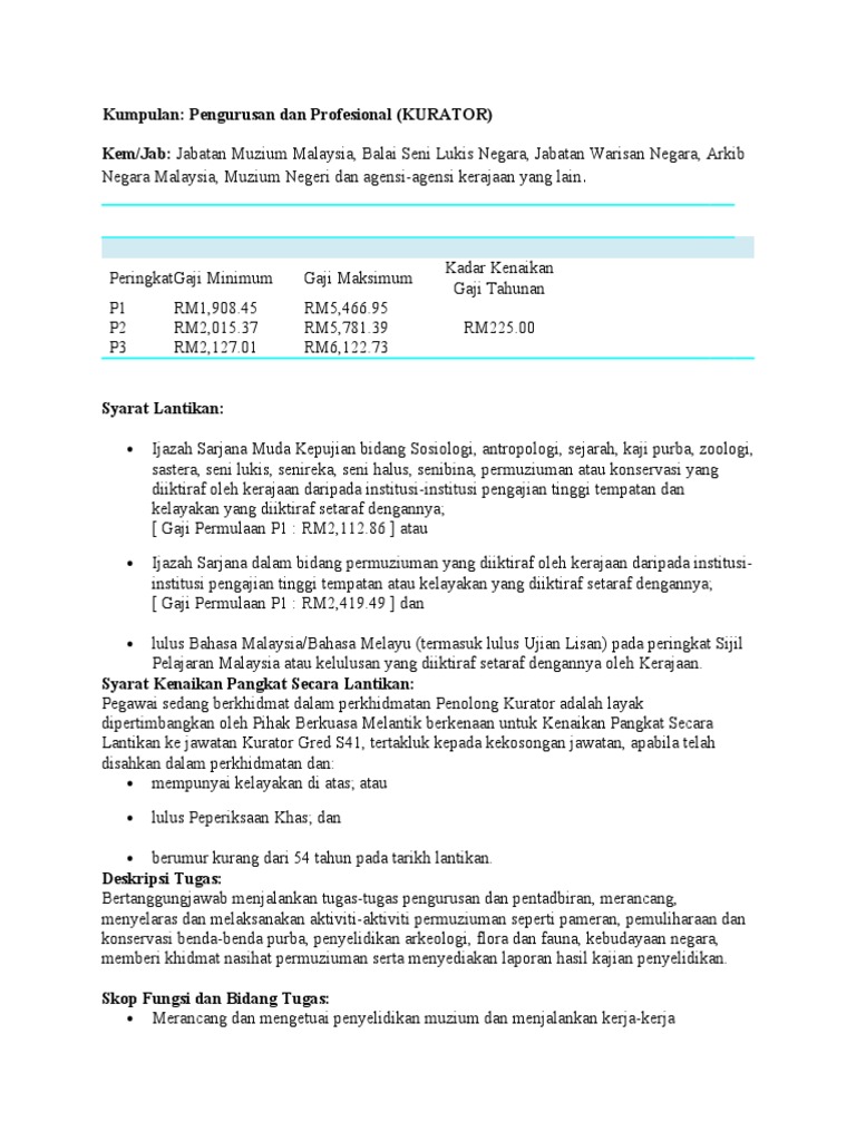Kumpulan Pengurusan Dan Profesional Kurator Kem Jab Jabatan Muzium Malaysia Balai Seni Lukis Negara Jabatan Warisan Negara Arkib