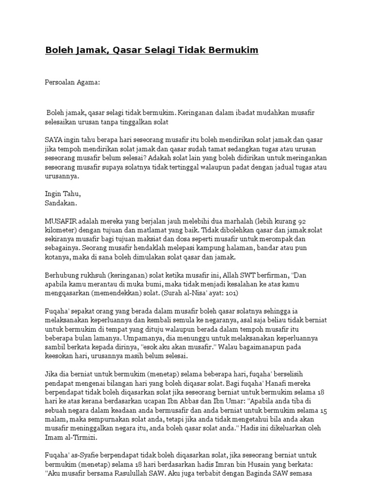 Scripters News Berapa Hari Solat Jamak Qasar Yang Dibolehkan Dalam Tempoh Musafir