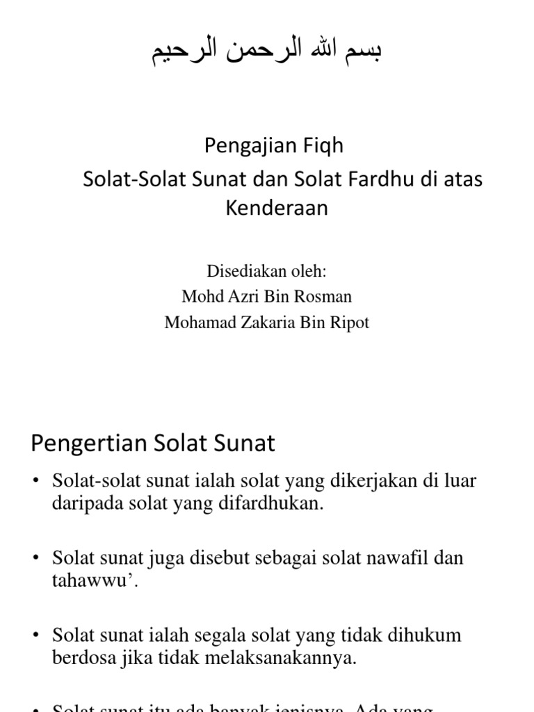 Fiqh Solat Solat Sunat Dan Solat Fardhu Di Atas Kenderaan