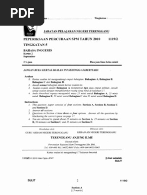 Bahasa Inggeris Kertas 2 Soalan Percubaan Negeari Terengganu 2010