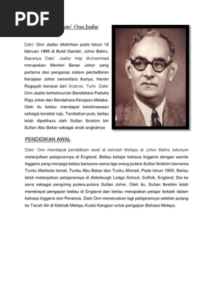 Dato onn dilahirkan pada tahun 1895 di bukit gambir johor bahru daripada keterunan yang ternama. A persekutuan tanah melayu dinamai malaysia. Dato onn jaafar f. Beliau merupakan anak yang ketiga dari tujuh orang anak lelaki dan tujuh orang anak perempuan.