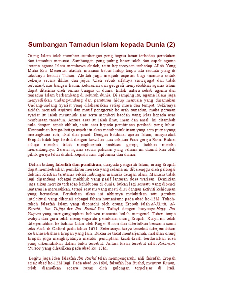 Doc Sumbangan Tamadun Islam Kepada Dunia Hafis Fadil Academia Edu