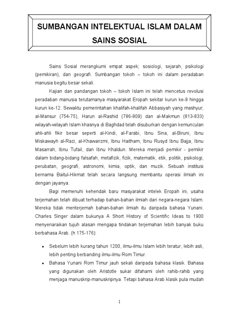 Sumbangan Intelektual Islam Dalam Sains Sosial