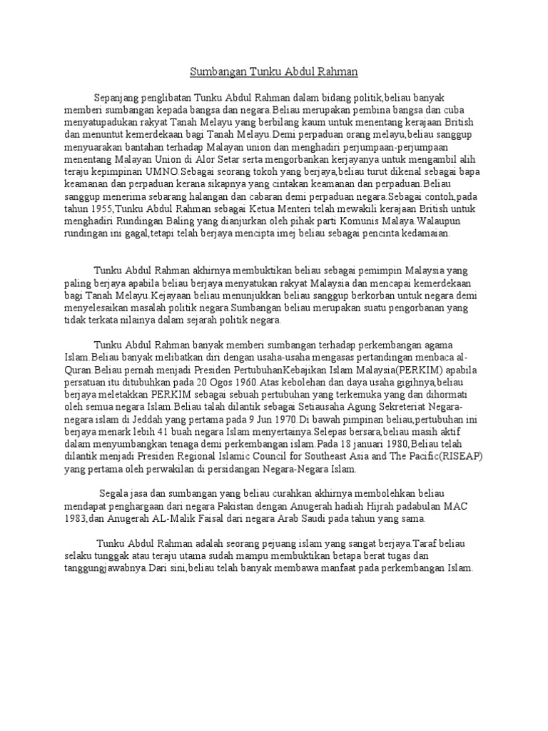 Sumbangan Tunku Abdul Rahman Kepada Negara Secara Ringkas
