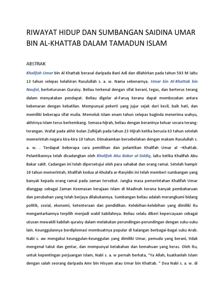 Riwayat Hidup Dan Sumbangan Saidina Umar